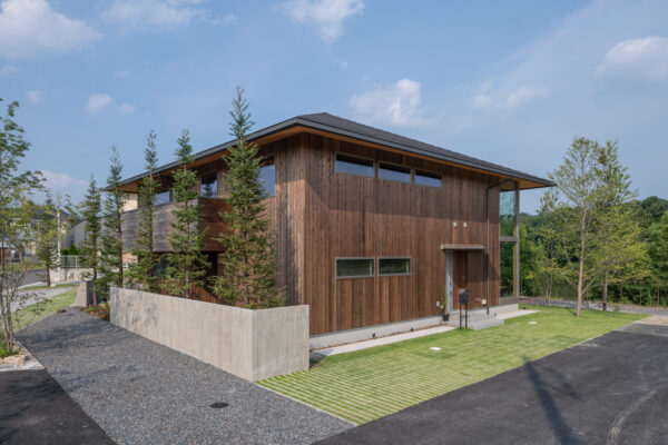 外観は木の外壁を基調とし、落ち着いた表情にまとめています。