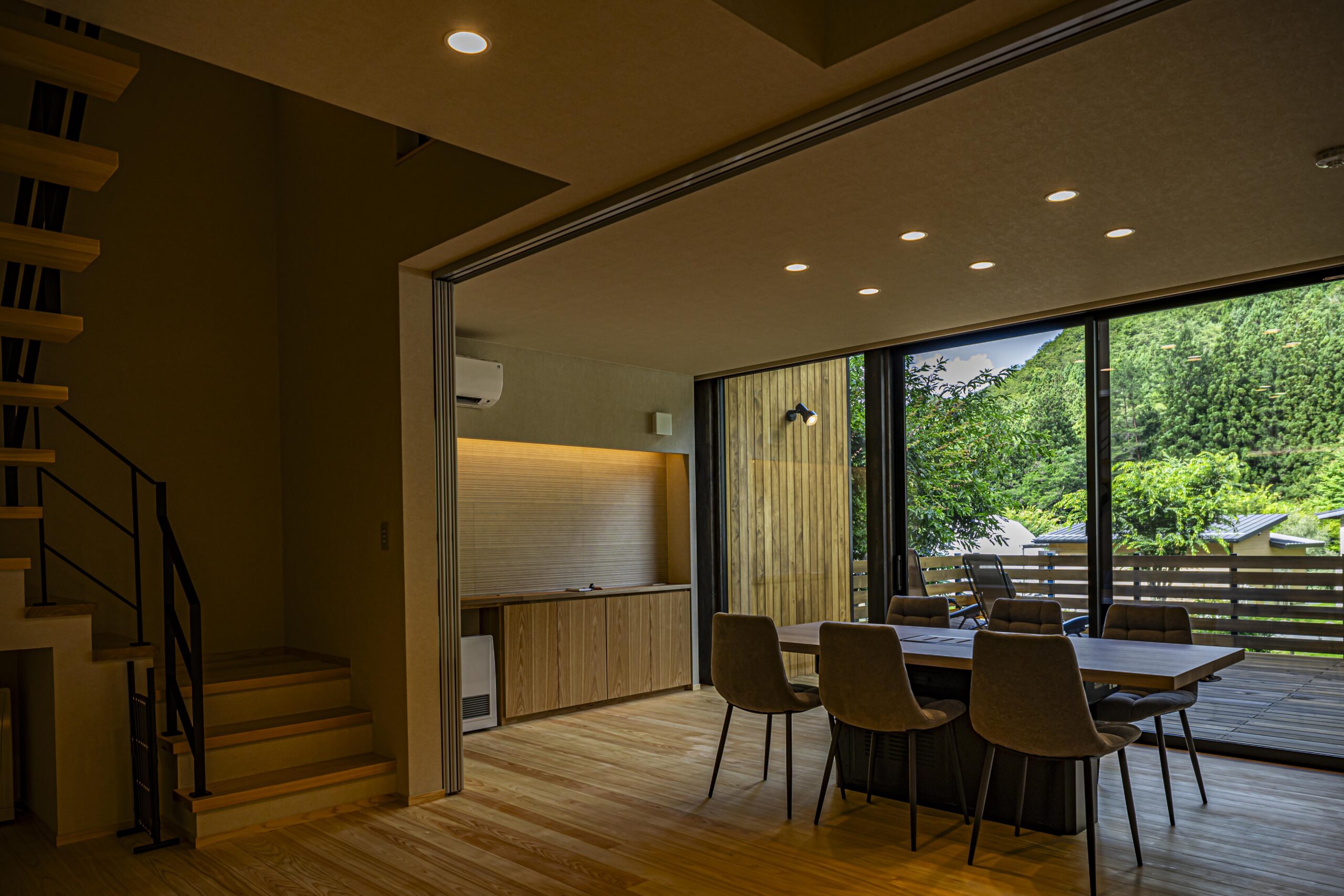 リビングは景色と星空を眺めることを優先し、開口を大きく設けました。