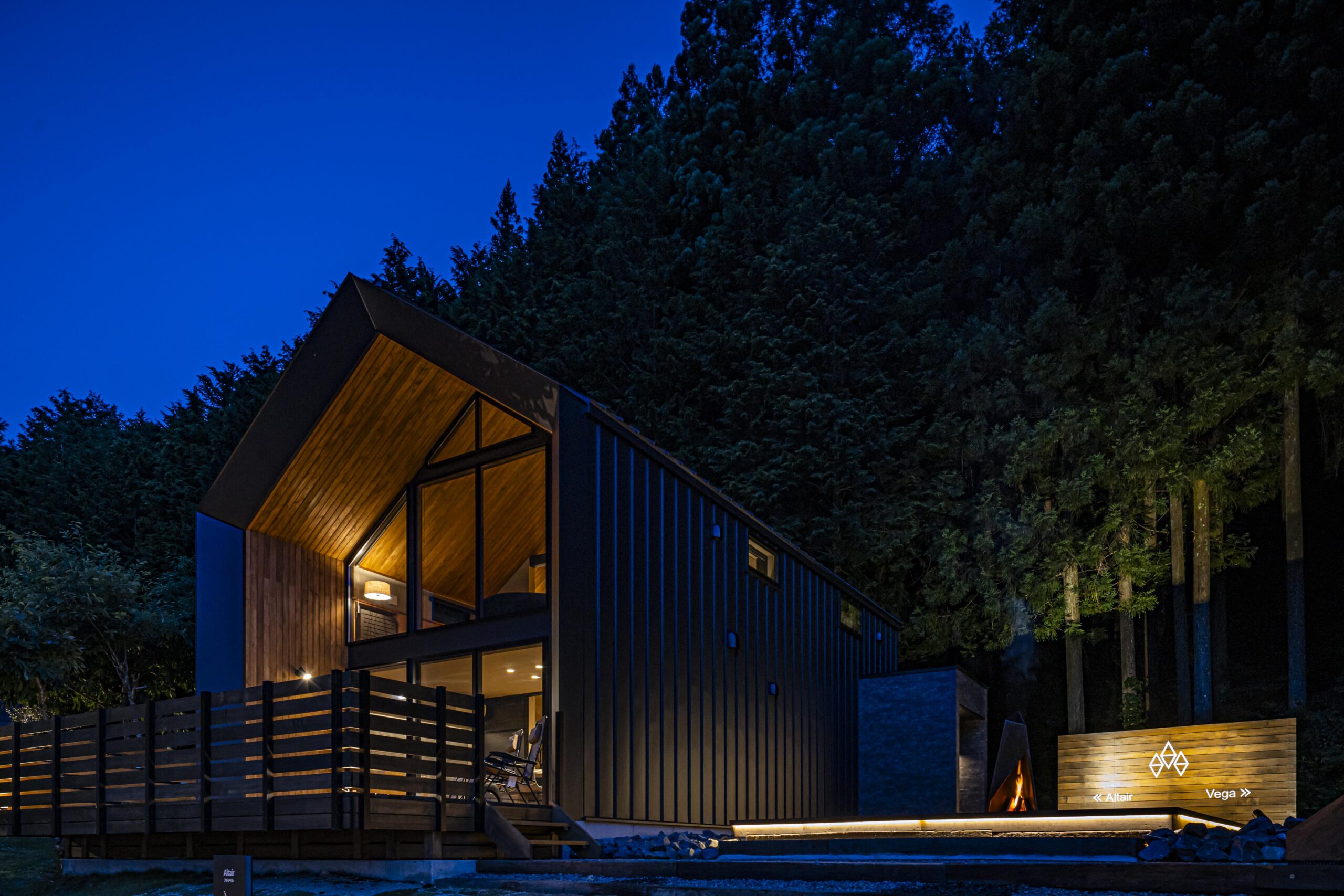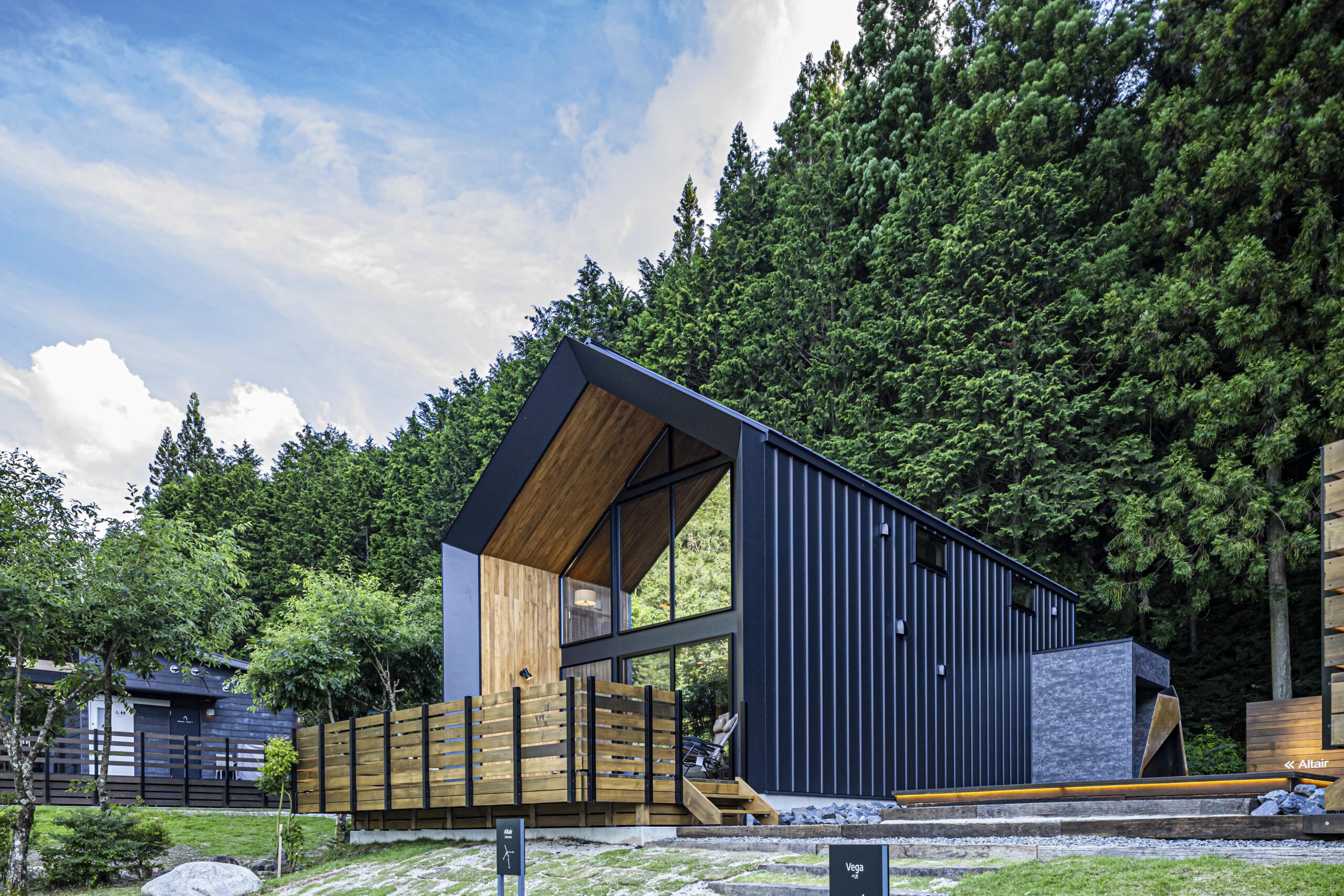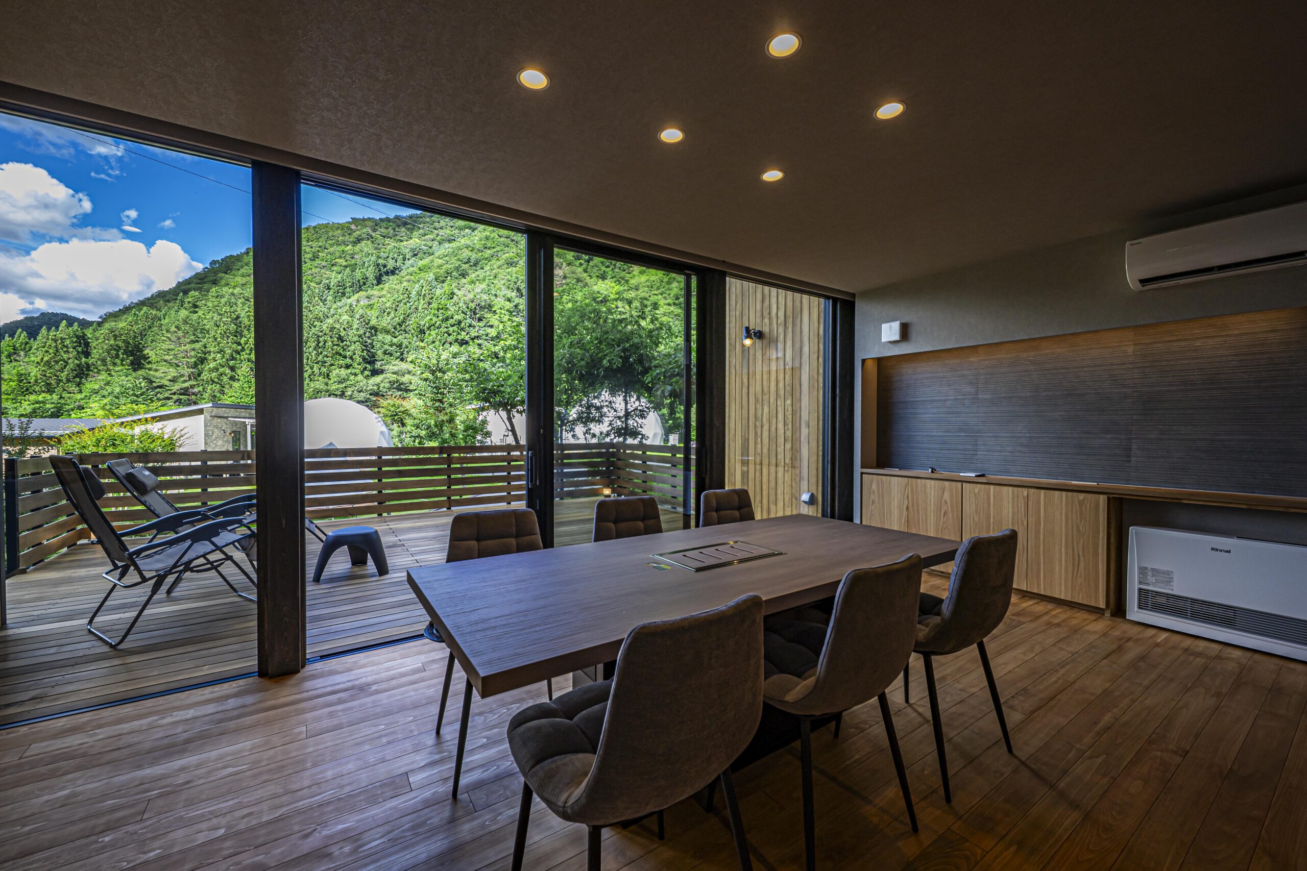 阿智村は星空が綺麗なことで知られる地域です。この恵まれた立地を最大限に活かし、誰にも邪魔されずに豊かな時間を過ごせるように計画しました。
