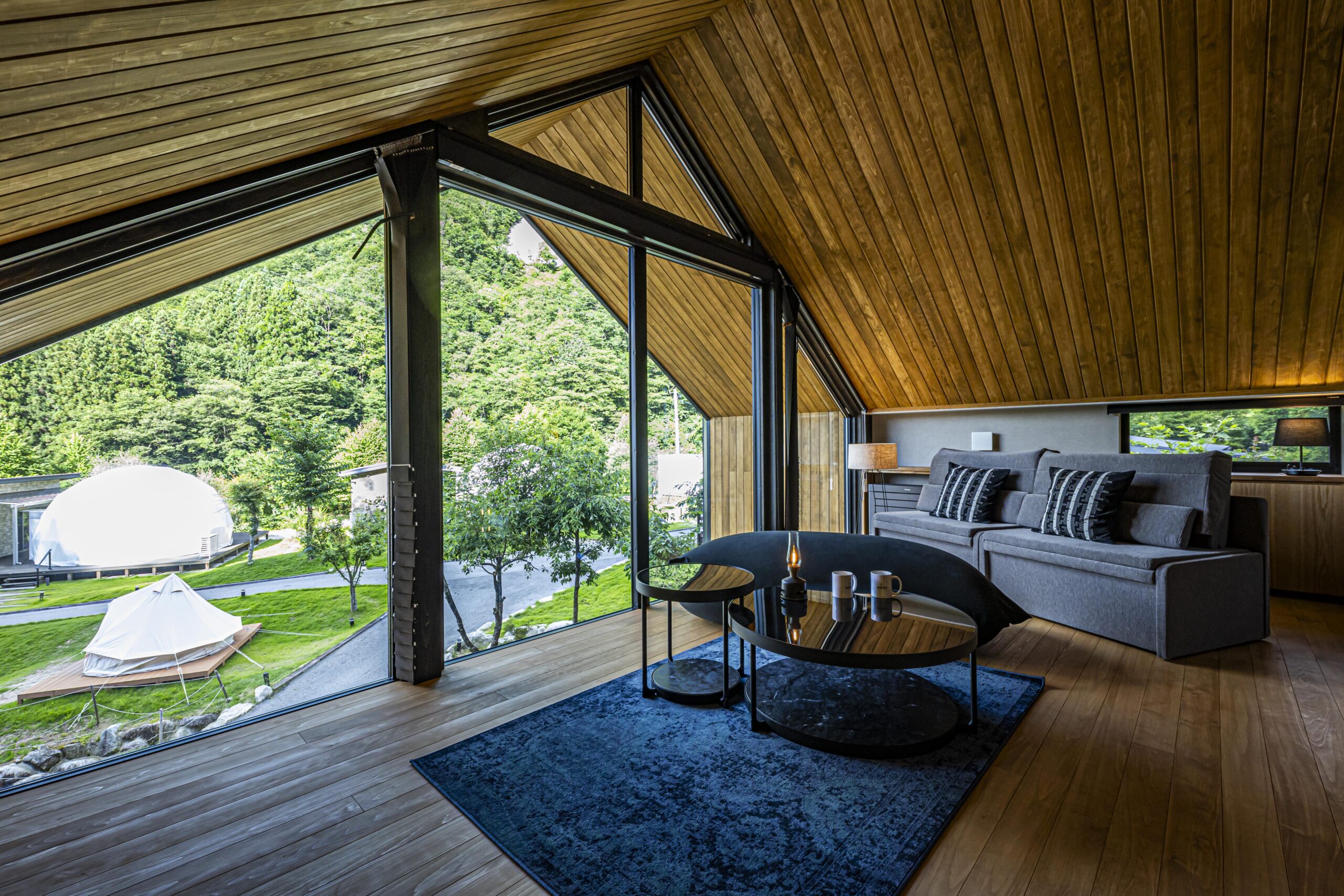 長野県阿智村園原に建つ、一棟貸しのグランピング施設です。
